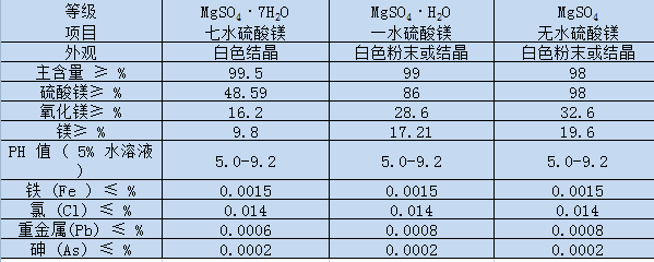 工業(yè)硫酸鎂只是根據(jù)用途所產(chǎn)生的名字,在硫酸鎂廠家中實(shí)際大部分是按含量進(jìn)行分類,如七水硫酸鎂、一水硫酸鎂以及無(wú)水硫酸鎂,但是統(tǒng)稱為工業(yè)硫酸鎂。另外按用途又分為農(nóng)業(yè)硫酸鎂等。因?yàn)橛脩羰褂靡蟮牟灰粯?,所以硫酸鎂廠家的產(chǎn)品相對(duì)都是不一樣的。那工業(yè)硫酸鎂主要使用與那些場(chǎng)所呢?