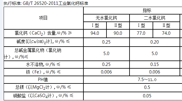 b、 二水粒狀氯化鈣,含量為74%min;77%min