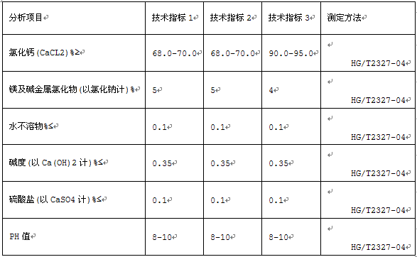 三、濰坊裕澤二水氯化鈣廠家的產(chǎn)品參數(shù)及執(zhí)行標(biāo)準(zhǔn):